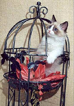 Diese kleine Ragdoll trägt den Namen "Snuggling Joker Osita". Obwohl am Anfang der Ragdoll-Zucht nur drei Tiere standen, ist sie gesund und munter. |
